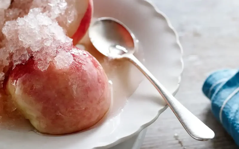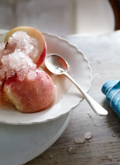 La recette de Diana Henry pour les pêches à la sicilienne avec granité de pêche et de vin